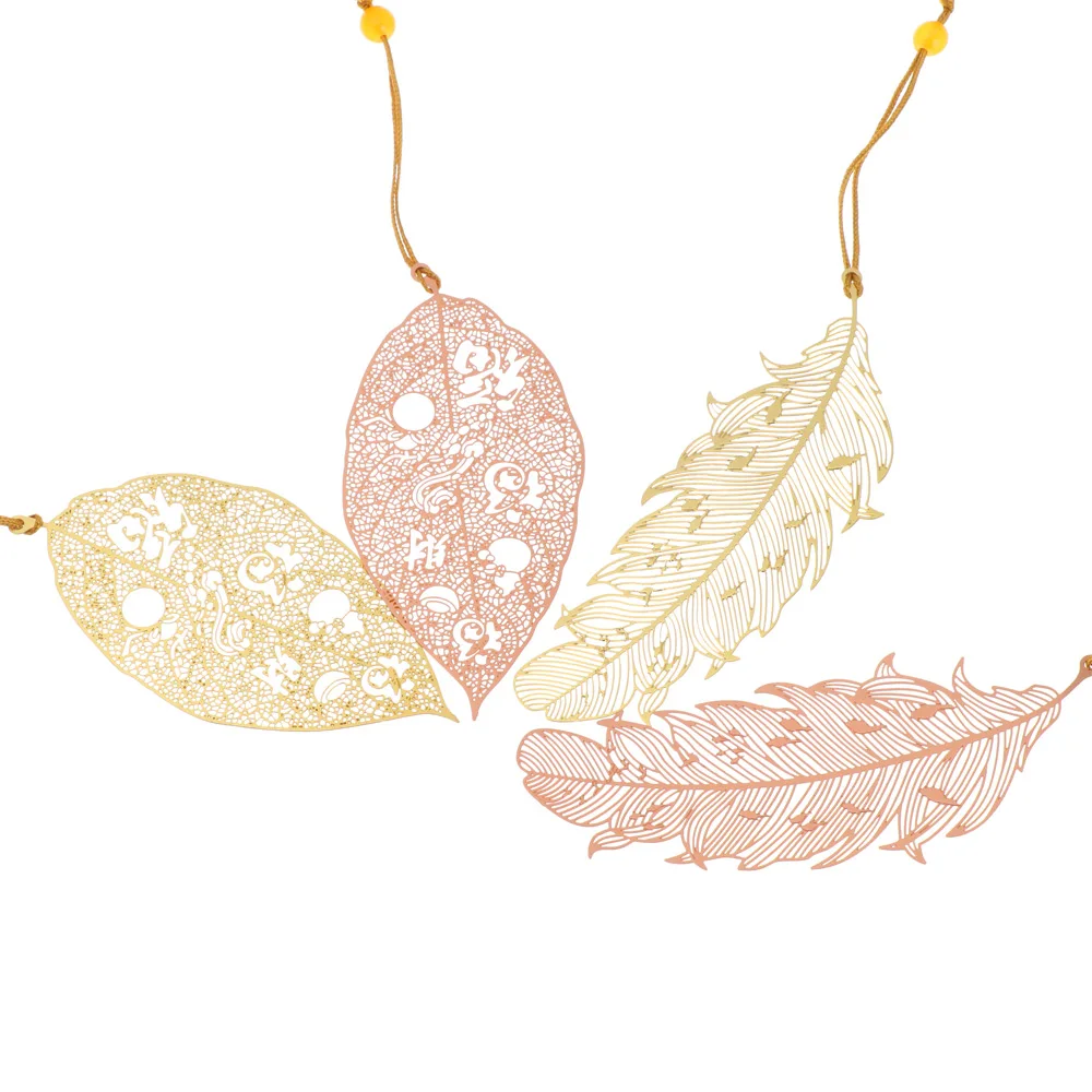 Name: Marcapáginas de plumas de hoja, creativo clásico exquisito Mini Diseño de Arte de Metal, marcapáginas, regalos para niños, papelería de oficina